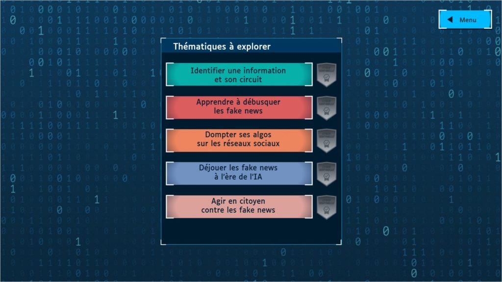 Dans Cybersentinelle, les jeunes sont intégrés en tant que nouvelle recrue d’une agence de lutte contre les fake news. A l’issue d’une période de formation sur la fabrication de l’information et le décryptage des fakenews. C’est une invitation à exercer son esprit critique mêlant théorie et pratique sous une forme scénarisée et ludique.